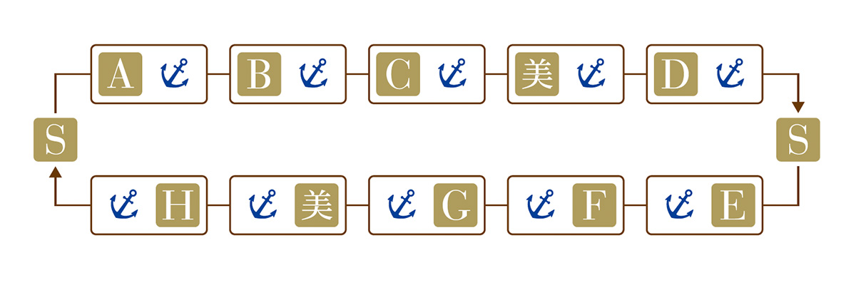 ボディメイク鍼灸はA~Hの全身を大きく動かす「メイン」と動いた身体を安定・定着させる「アンカー」があり、2つの作業を合わせて一工程とお考えください。